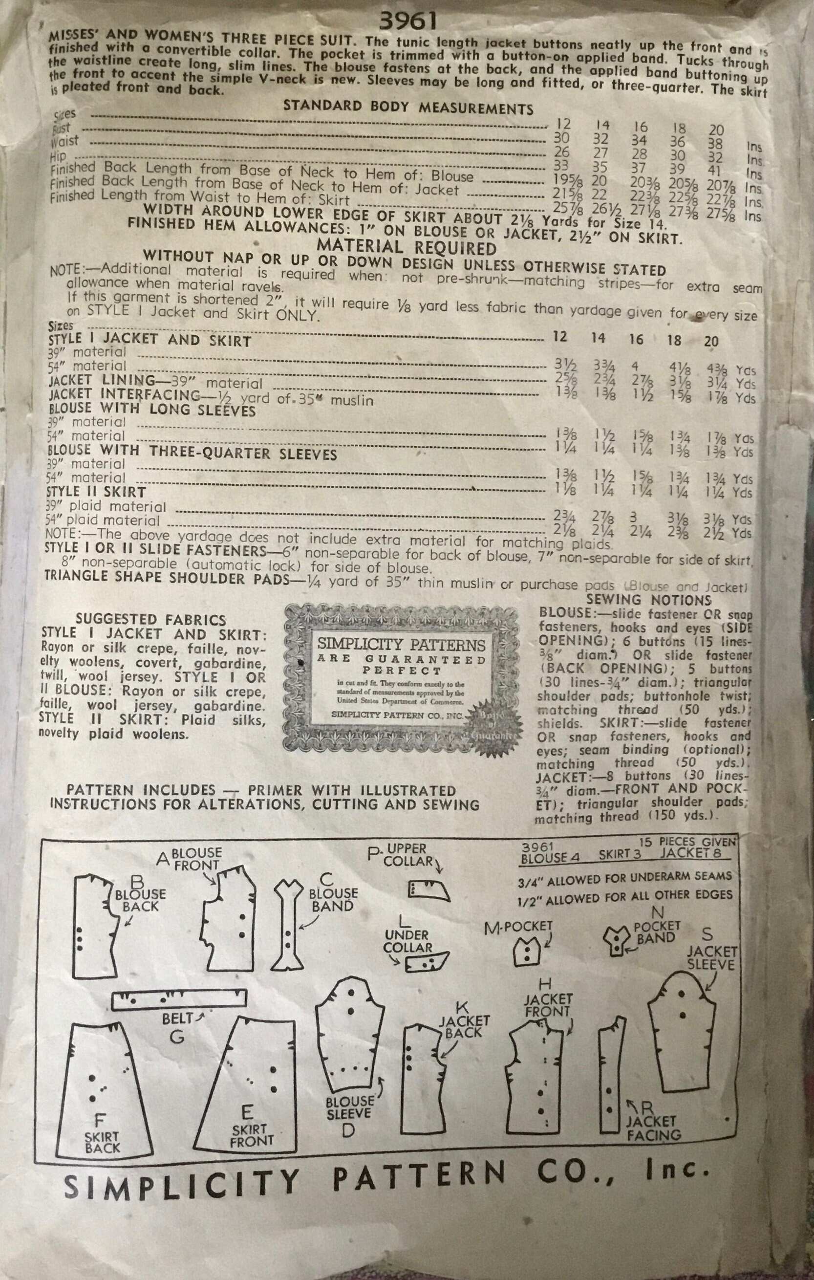 Simplicity Misses And Womens Three Piece Suit Sewing Pattern Etsy